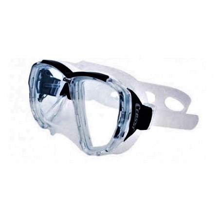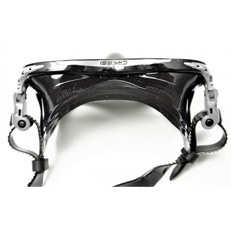 La reducida distancia ojo/lente asegura una óptima visibilidad en todas direcciones. Disponible también en versión óptica. Como todas las máscaras Cressi tiene una gran rigidez a nivel de puente central para evitar la pérdida del plano de los cristales debido a un exceso de tensión de la tira que podría provocar distorsiones ópticas.