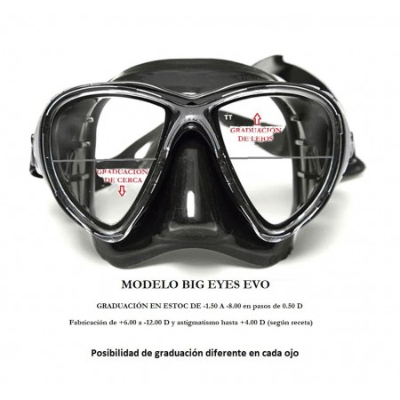 El diseño simétrico de sus lentes, así como la facilidad de montaje y desmontaje de los mismos, la hacen un modelo idóneo para su utilización como máscara óptica, disponible con cristales graduados para miopía.