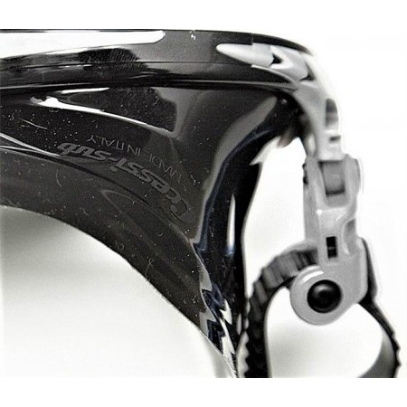 Big Eyes equipa una nueva hebilla de tipo basculante de reducido tamaño y enorme facilidad de regulación, incluso con la máscara colocada y utilizando guantes de neopreno. La nueva hebilla posee un nivel de resistencia superior incluso a las tradicionales hebillas integradas.